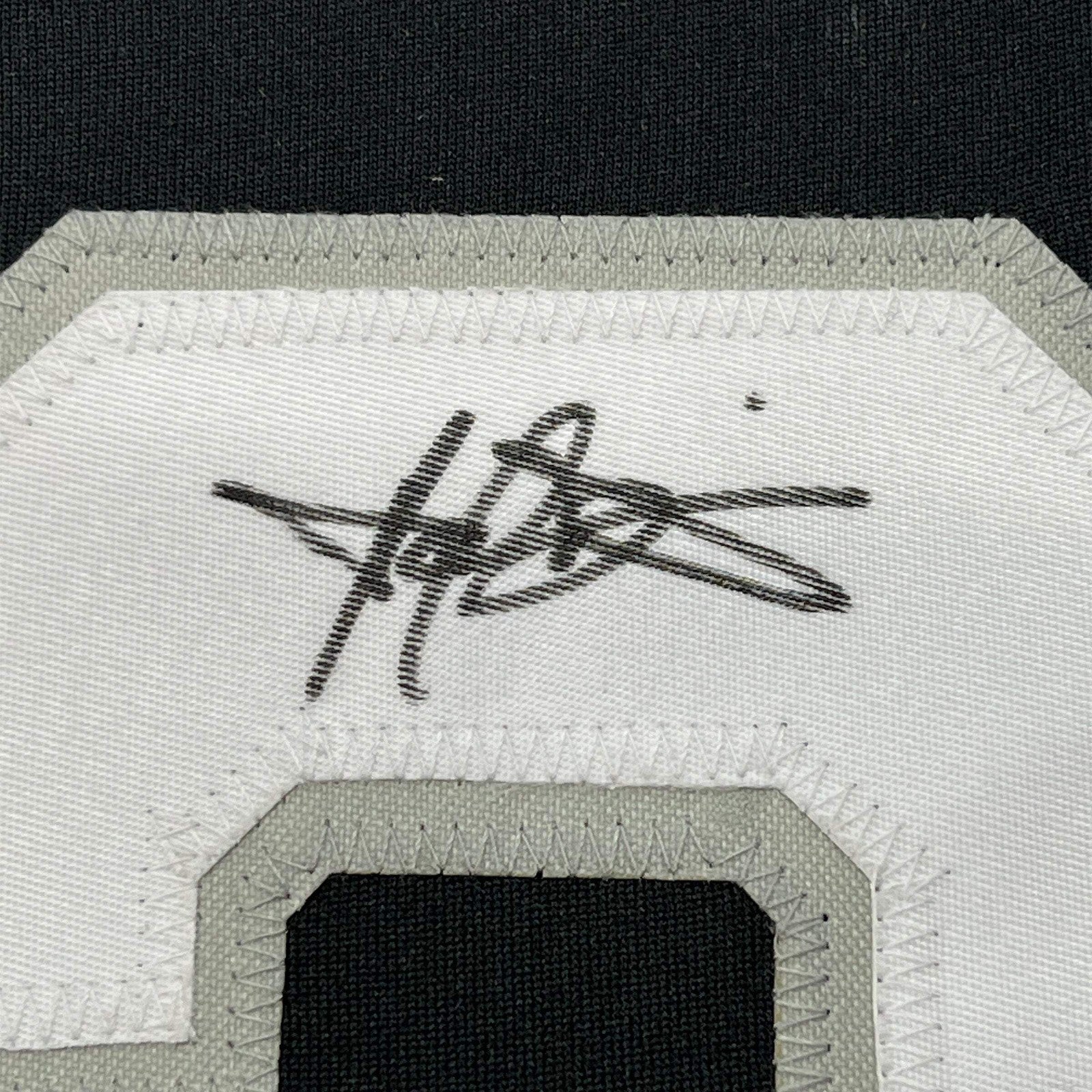 framed autographed/signed harold baines 33x42 chicago black jersey beckett COA
