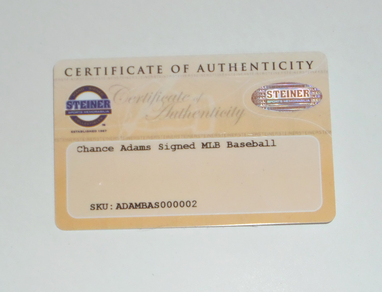 chance adams signed OML ball colorado rockies NY yankees royals w/ steiner COA