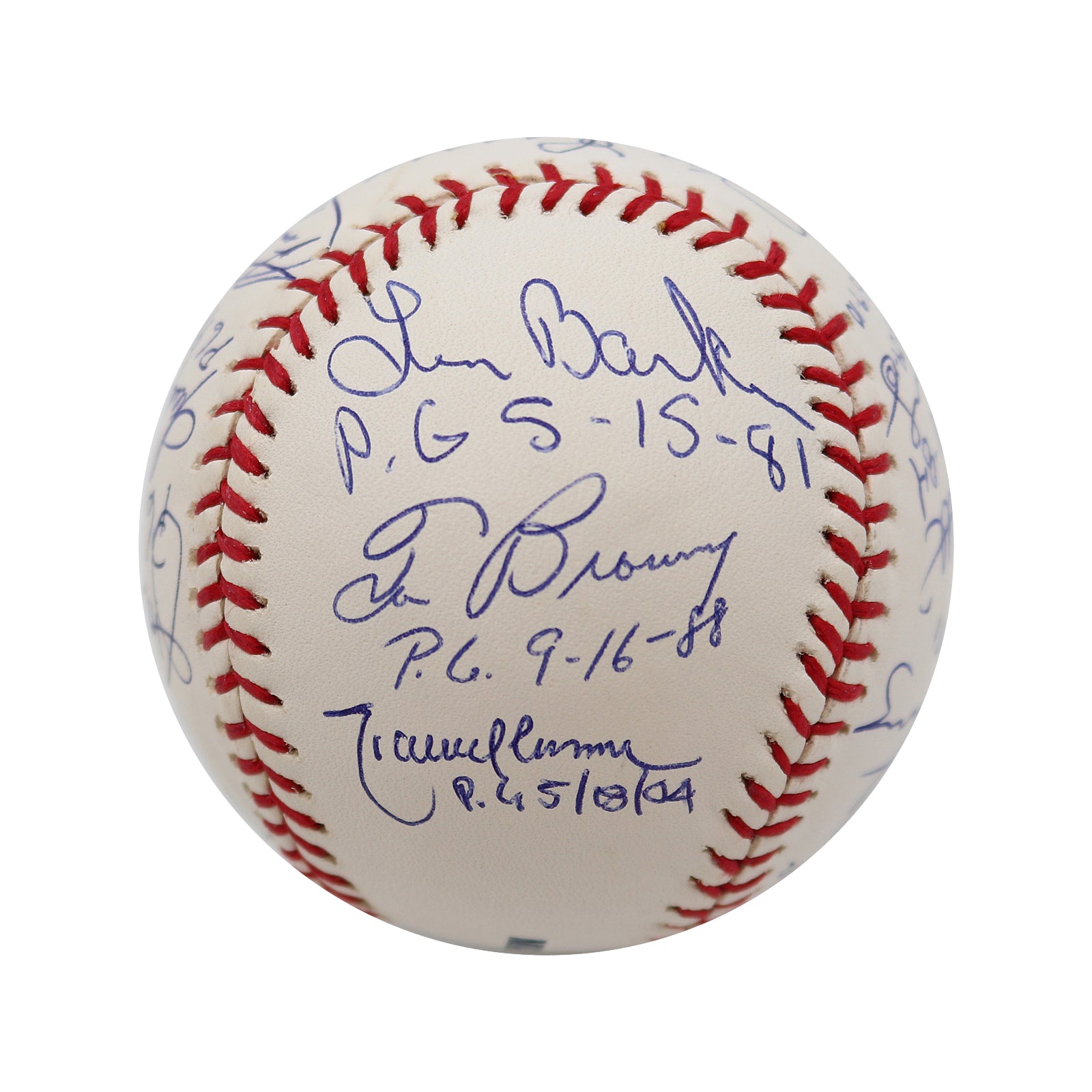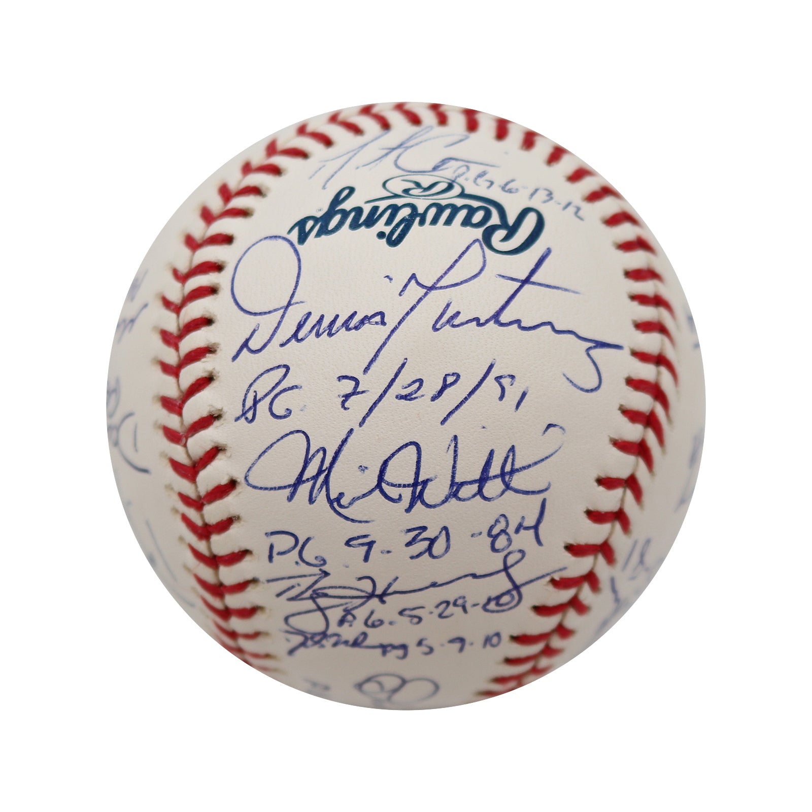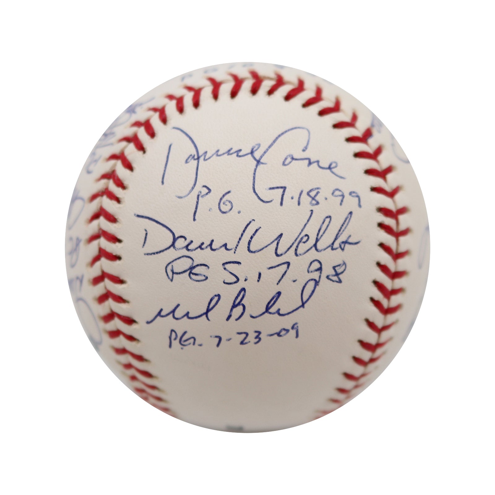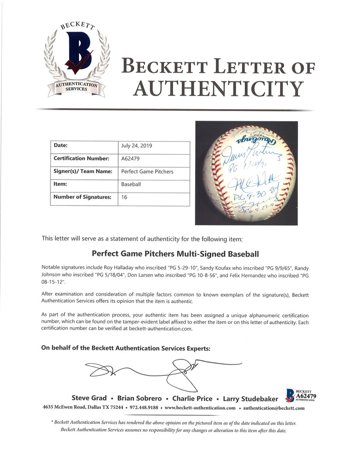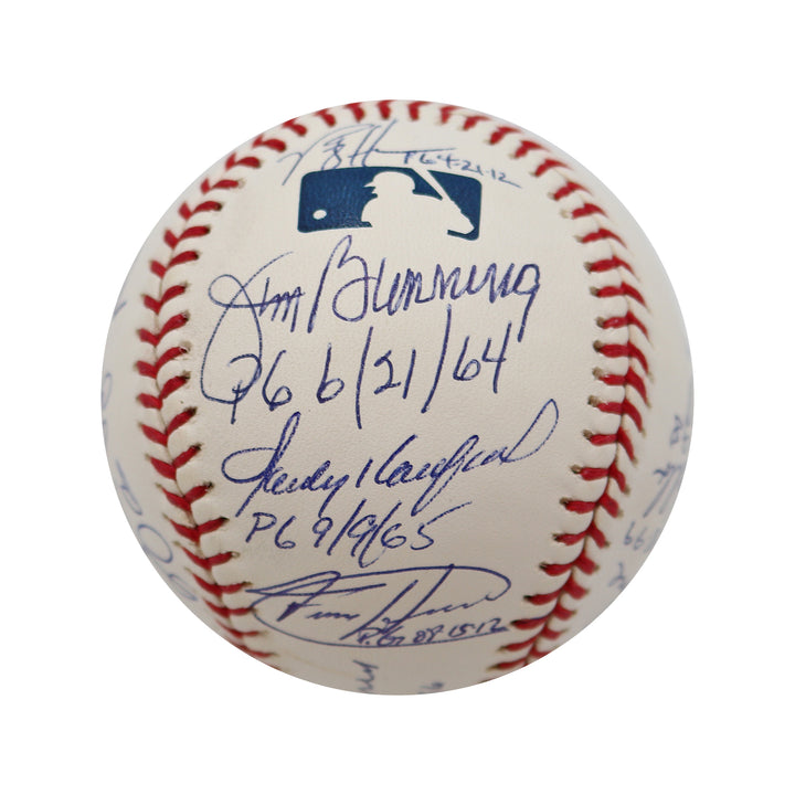 16 perfect game pitchers autographed and inscribed OML baseball koufax, halladay, johnson, martinez, larsen, barker- beckett