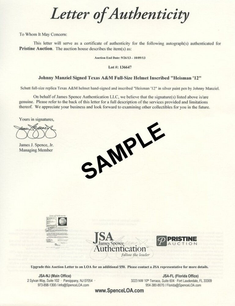 Authentic Autographed Sports Memorabilia and Game Used Items