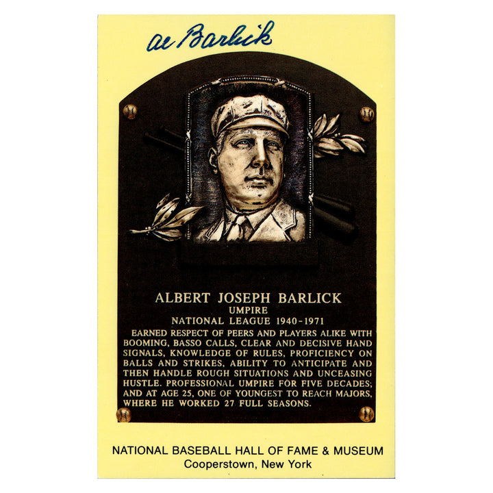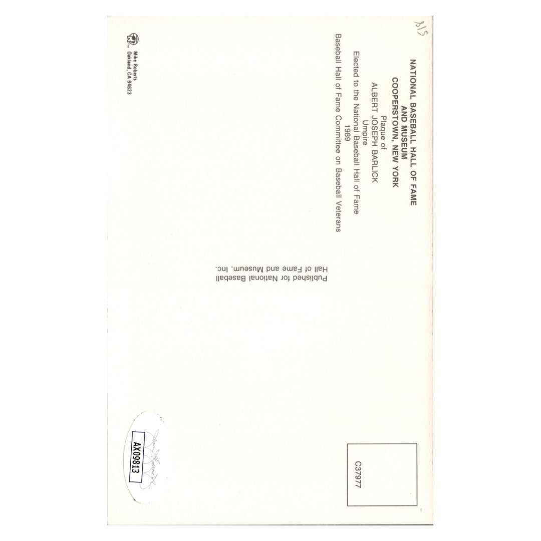 Al Barlick Umpire Autographed Signed Hall Of Fame Plaque Postcard (JSA COA #AX09813)