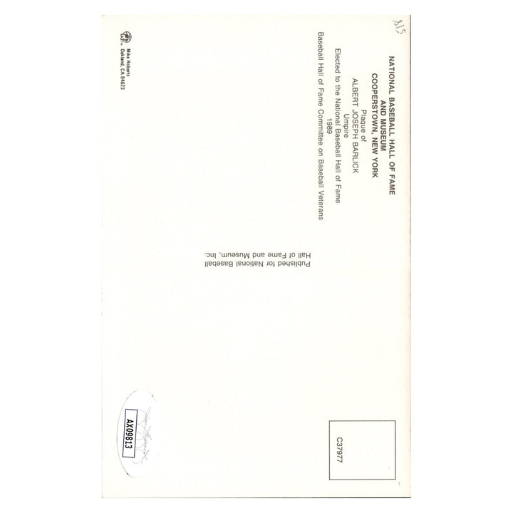AL barlick umpire autographed signed hall of fame plaque postcard (JSA COA #ax09813)