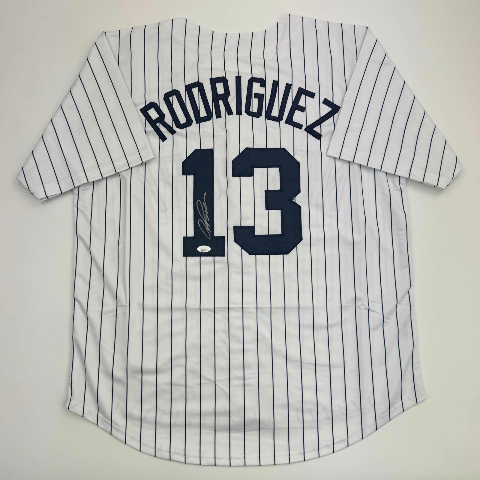 autographed/signed alex rodriguez new york pinstripe baseball jersey JSA COA