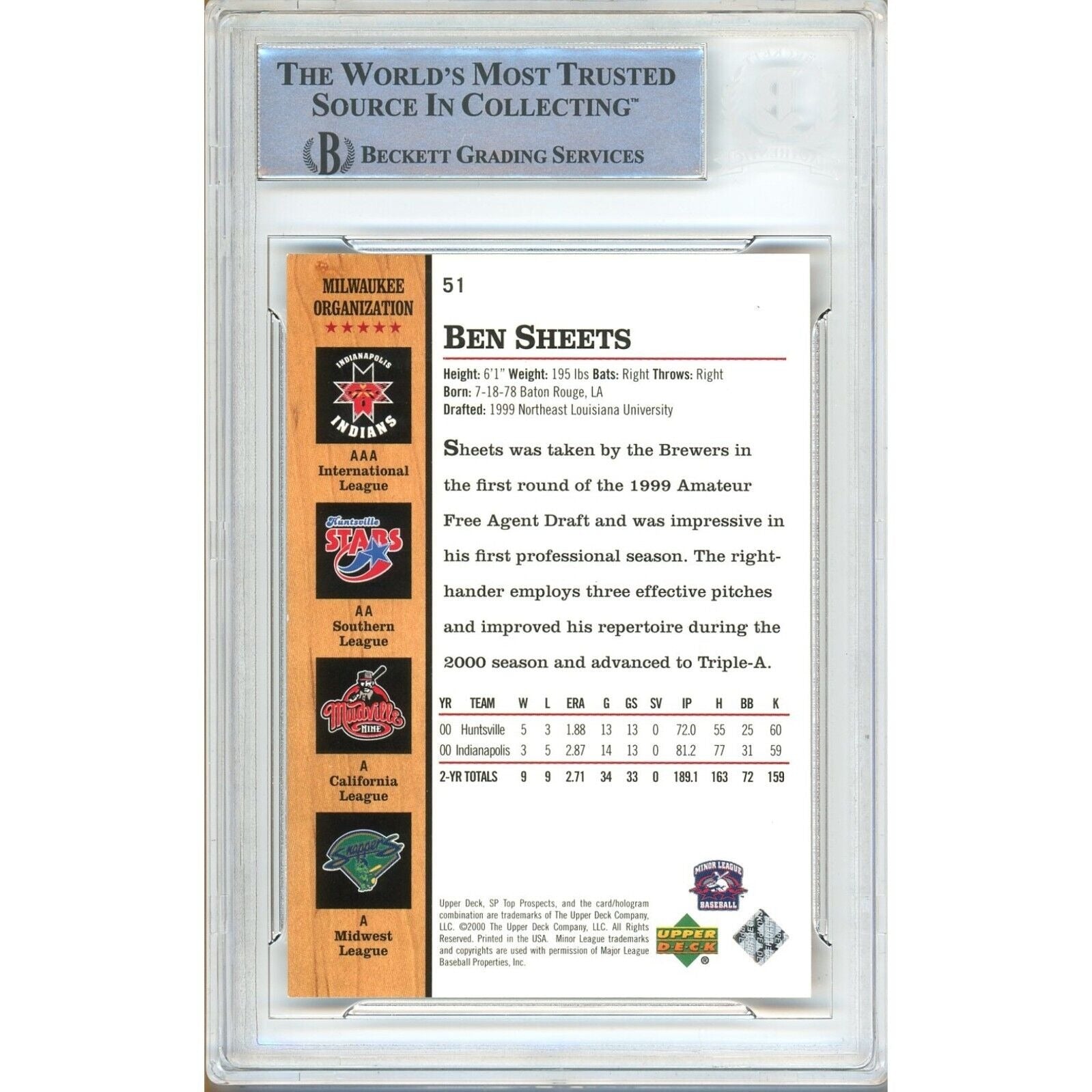 Ben Sheets Milwaukee Brewers Signed 2001 SP Top Prospects Card BAS Auth Auto Slab