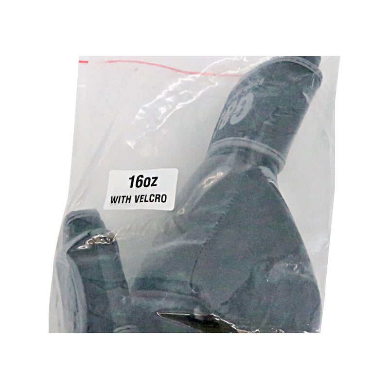 Black Leather Pair of Training Boxing Gloves - Velcro Strap - 16 Oz