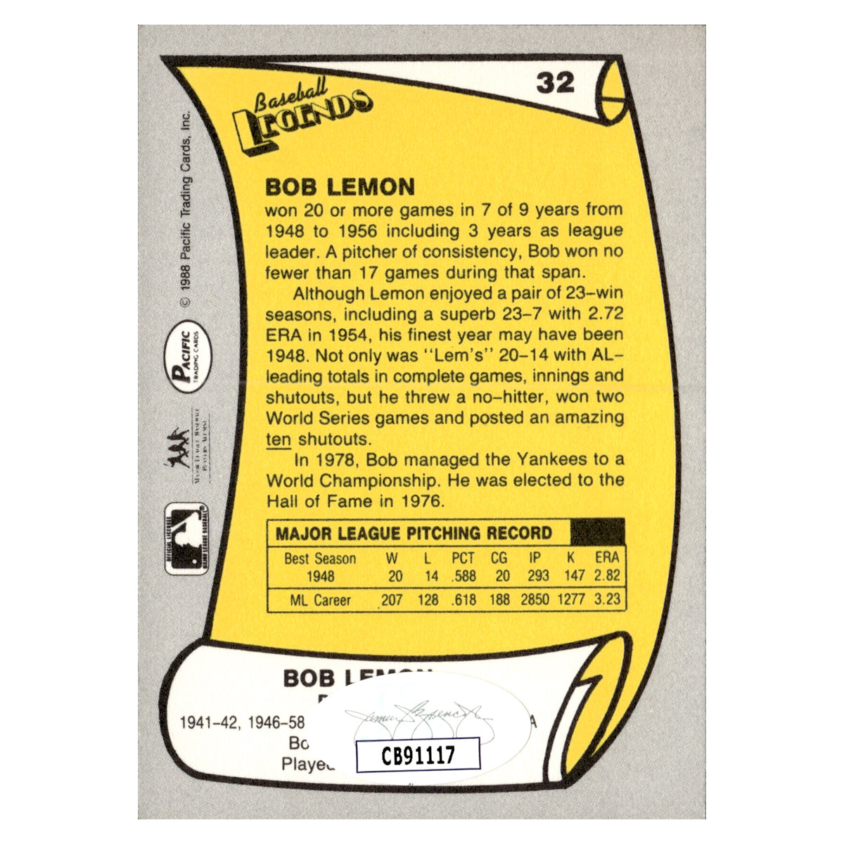 bob lemon cleveland indians autographed signed 1988 pacific baseball legends (JSA COA #cb91117)