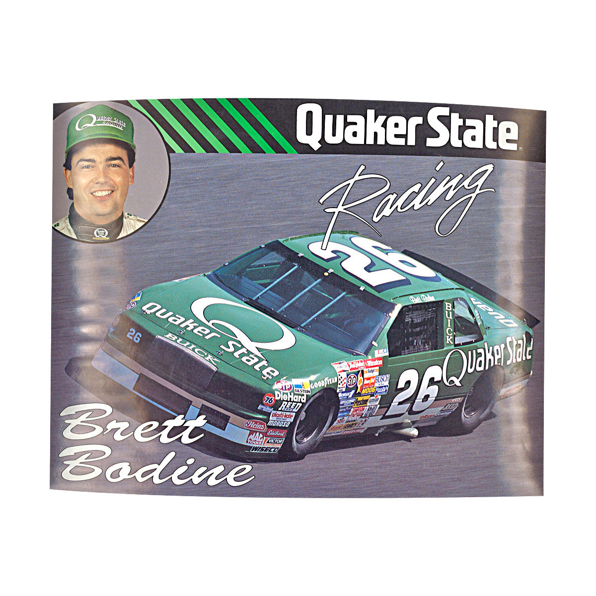 Brett Bodine Nascar Quaker State Racing 1990 8x10 Driver Card - Featuring Brett Bodine with his 1990 Quaker State Racing livery, this 8x10 driver card captures a key era of NASCAR sponsorships and speed.