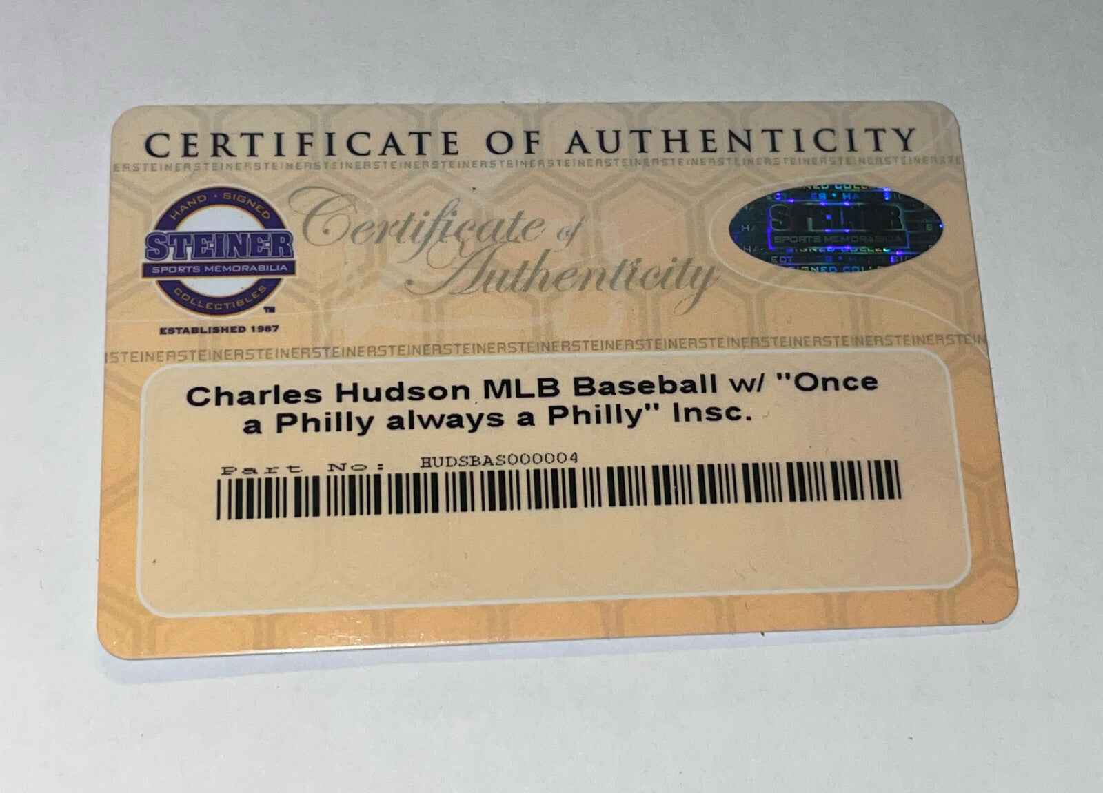 CHARLES HUDSON SIGNED & INSCRIBED -ONCE A PHILLY ALWAYS A PHILLY- STEINER BALL