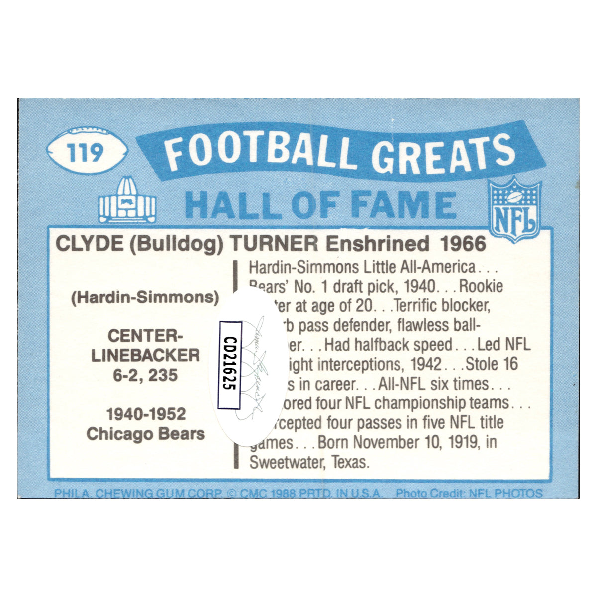 Clyde Bulldog Turner Chicago Bears Autographed Signed 1998 Swell Greats Pro Football Hall Of Fame Goal 25th Anniversary Card (JSA COA #CD21625)