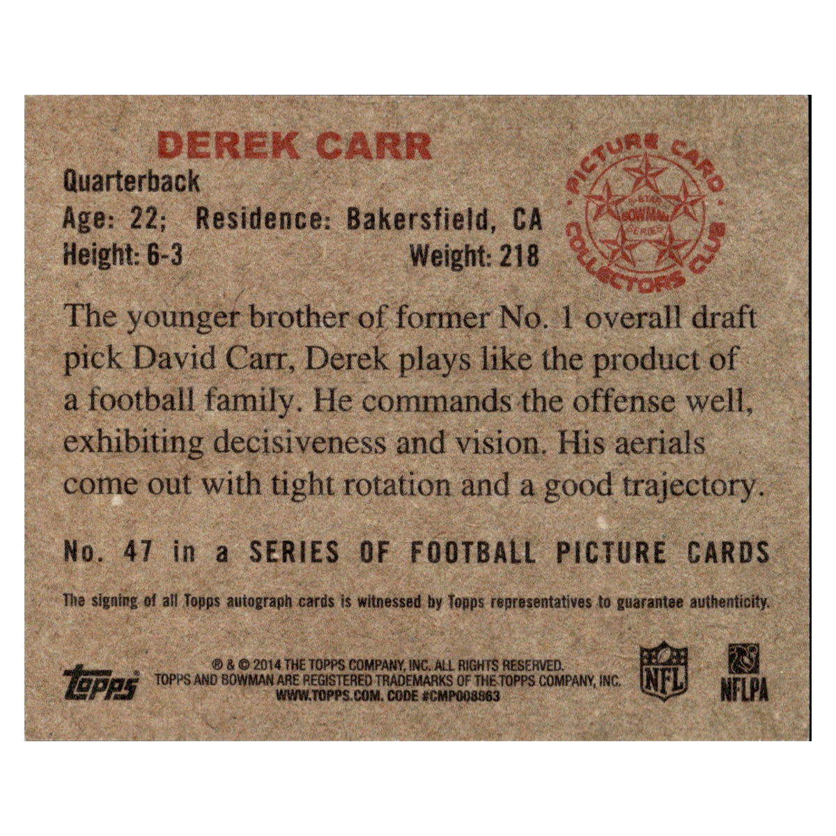 derek carr new orleans saints 2014 bowman mini rookie autographs #17/99