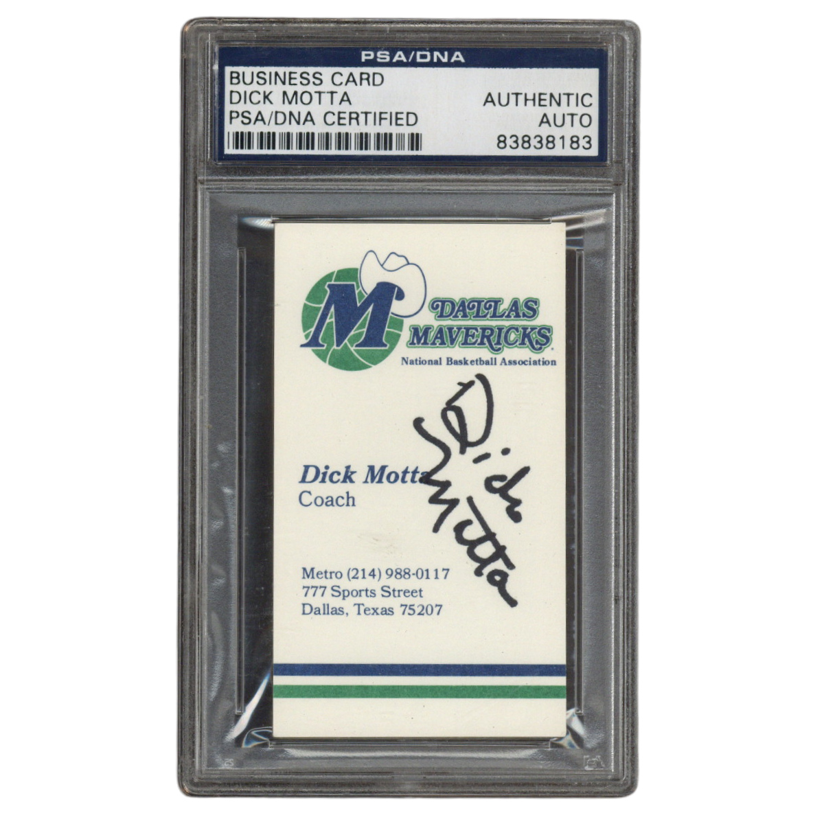 dick motta autographed signed dallas mavericks head coach business card PSA