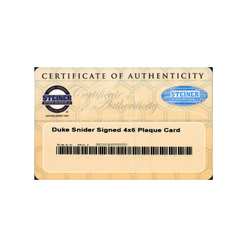 duke snider autographed signed 4x6 plaque card cooperstown (steiner COA)