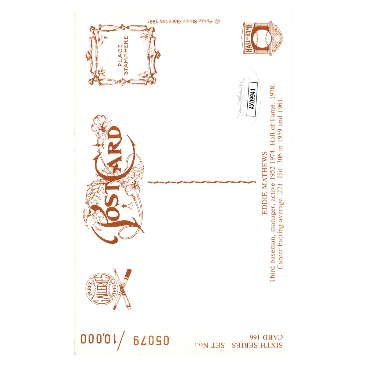 Eddie Matthews Atlanta Braves Autographed Signed Perez Steele 1981 Postcard #5079/10000 (JSA COA #AX09941)