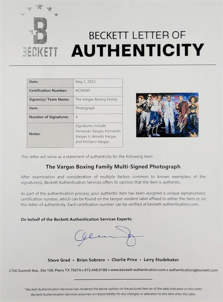 Fernando, Amado, Emiliano, Fer Jr. Vargas signed 11x14 photo autograph (A) BAS