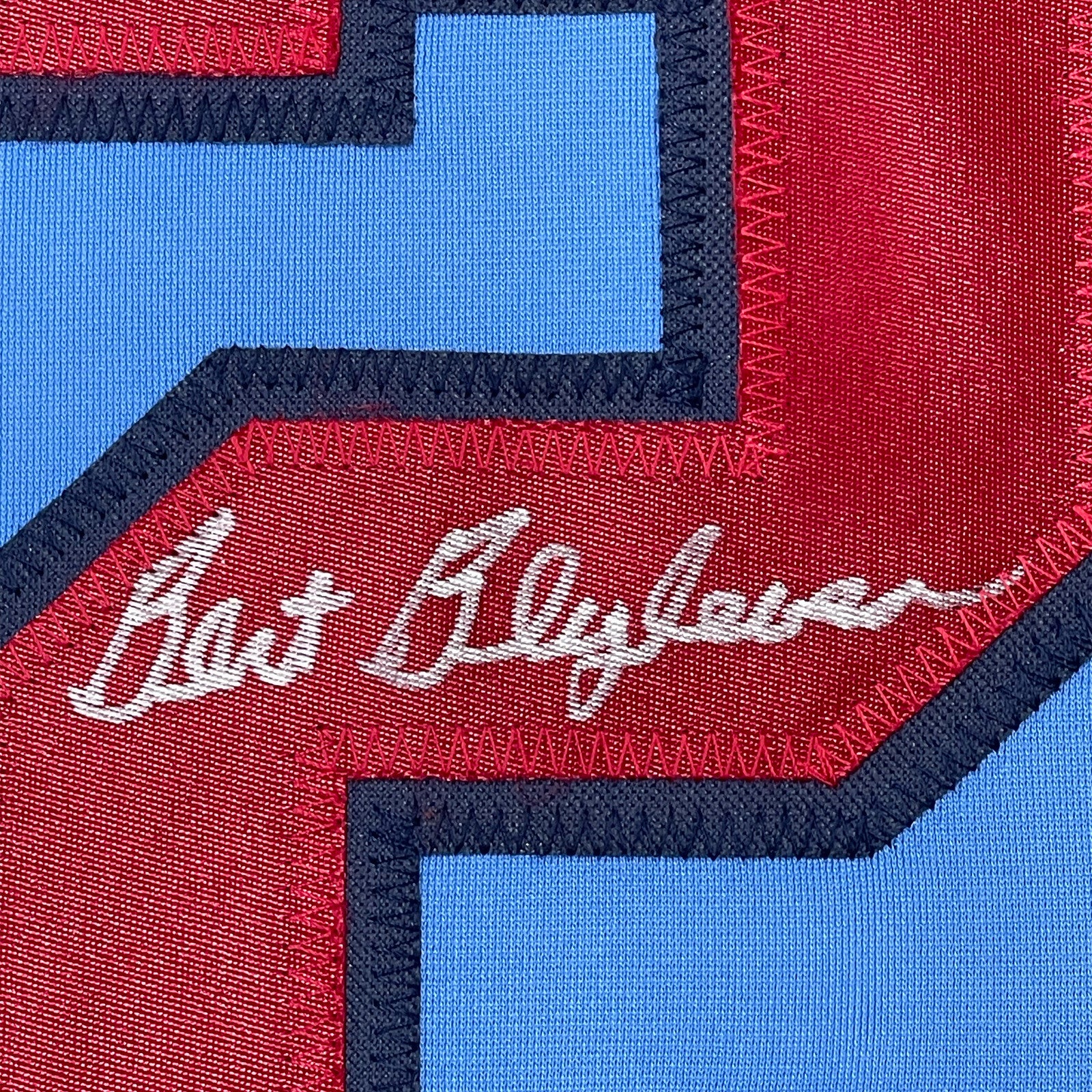 framed autographed/signed bert blyleven 33x42 light blue jersey JSA COA