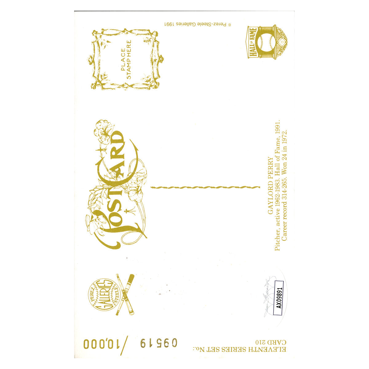 gaylord perry san francisco giants autographed signed perez steele 1991 postcard #9519/10000 (JSA COA #ax09891)
