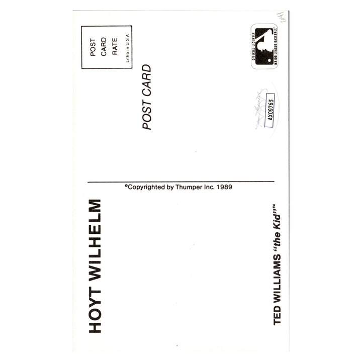 Hoyt Wilhem San Francisco Giants Autographed Signed 1989 Ted Williams Thumper Inc. Post Card (JSA COA #AX09765)