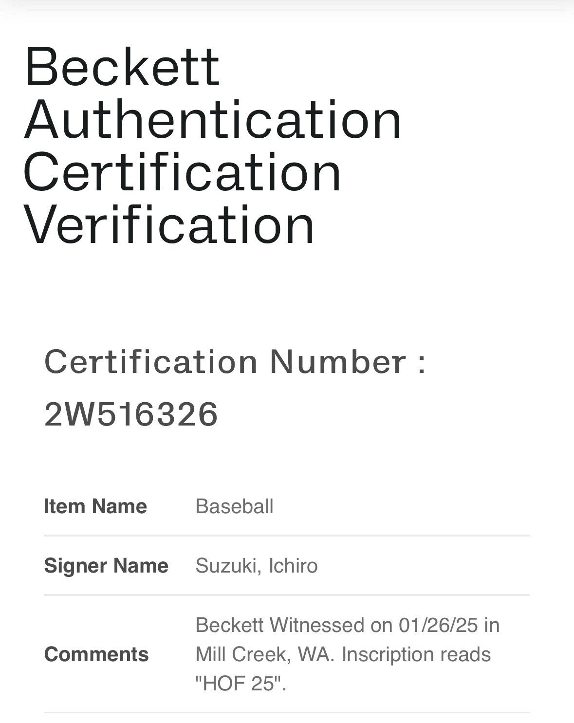 ichiro suzuki signed MLB HOF logo baseball mariners HOF 25 autograph BAS COA