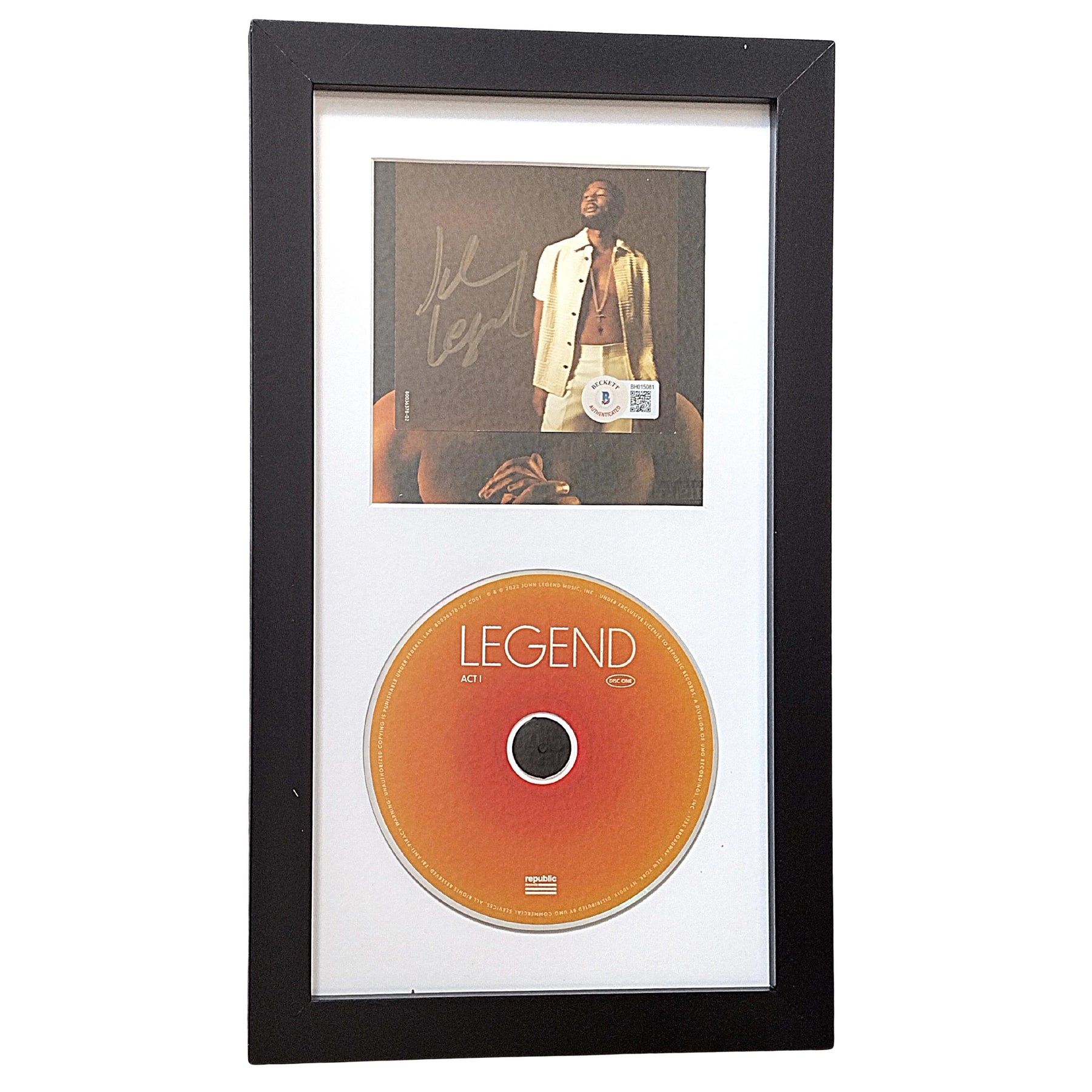 john legend autographed legend cd cover insert framed matted wall display beckett