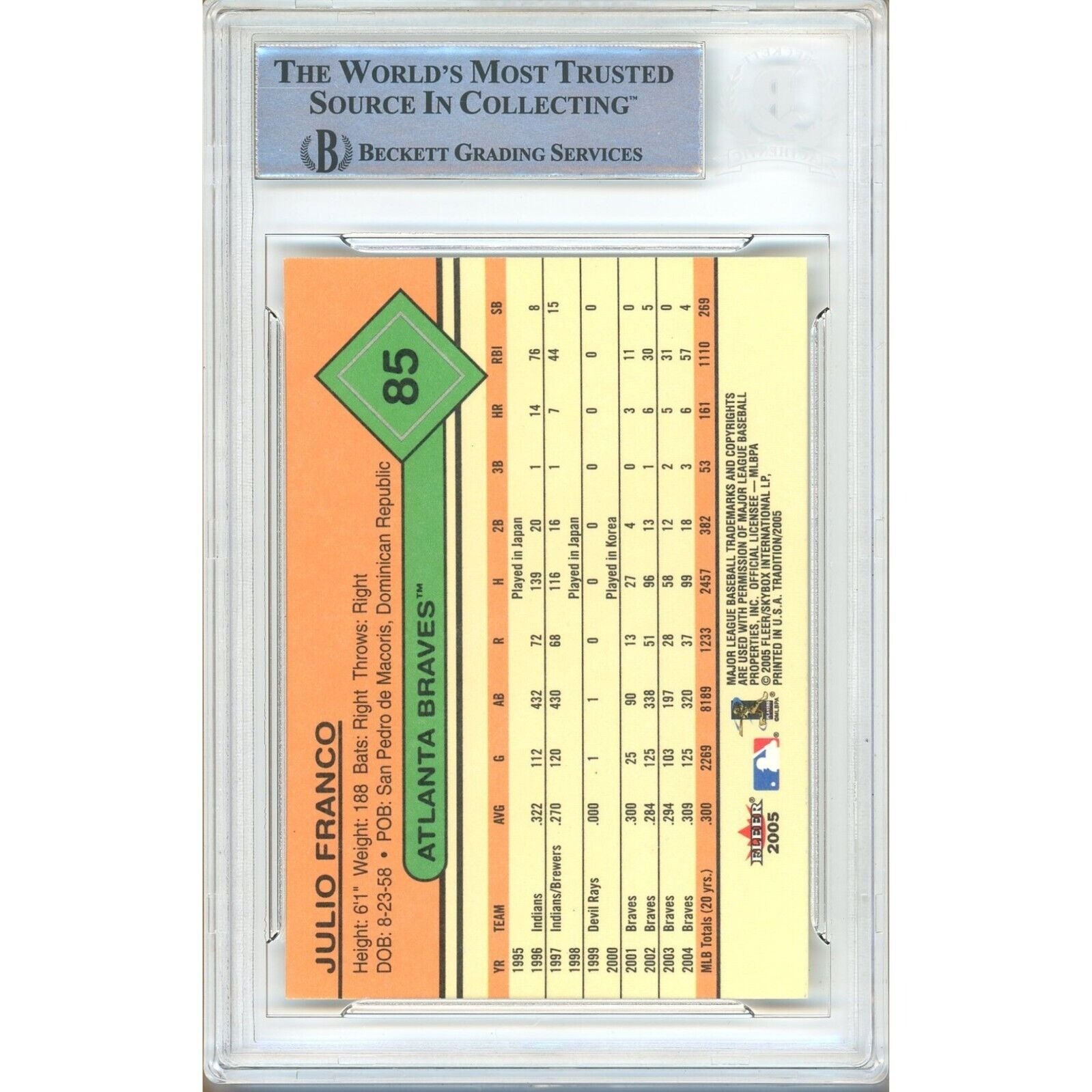 julio franco atlanta braves signed 2005 fleer tradition baseball card BAS auth auto slab
