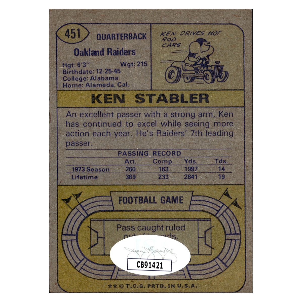ken stabler oakland raiders autographed signed 1974 topps (JSA COA #cb91421)