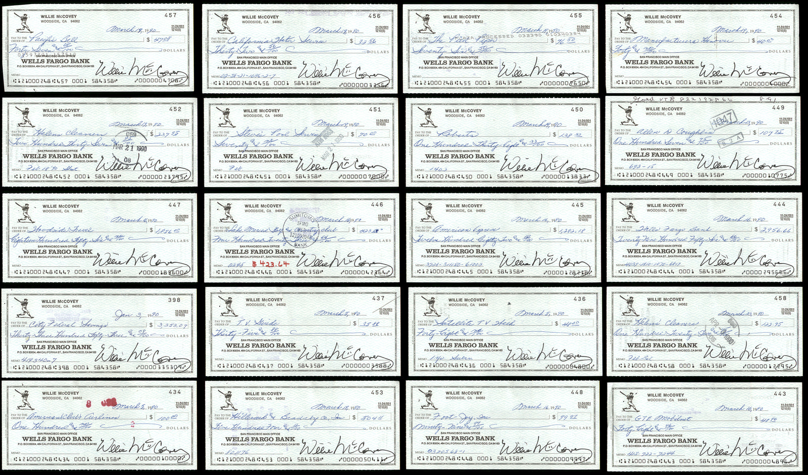 Lot of 50 Willie McCovey 3x6 Checks San Francisco Giants SKU #219430