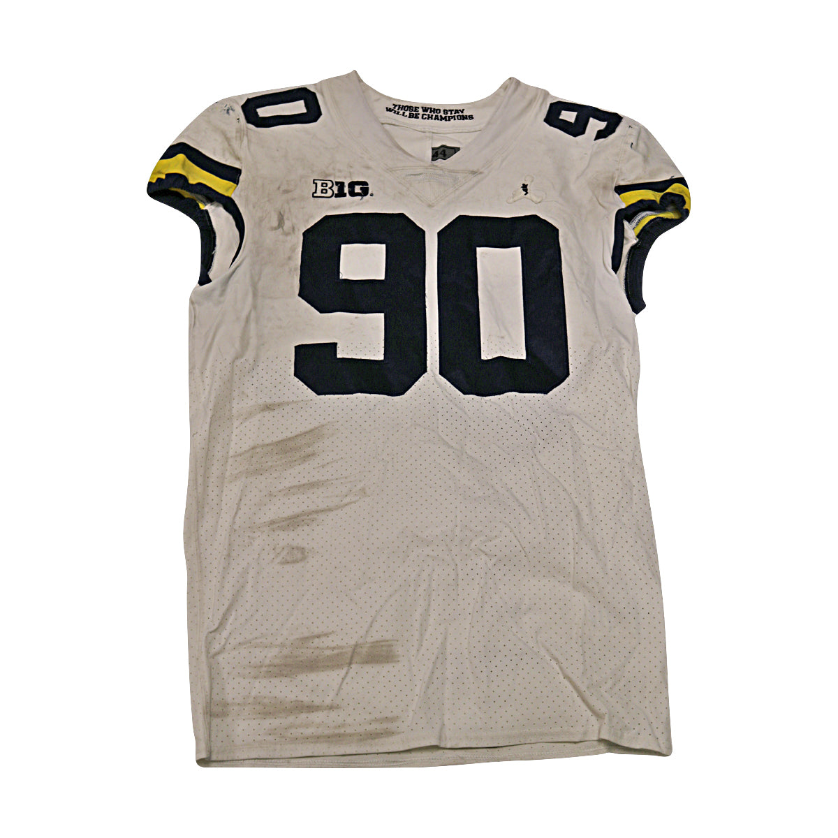 Michigan University #90 2018 Practice Used White Jordan Brand Jersey