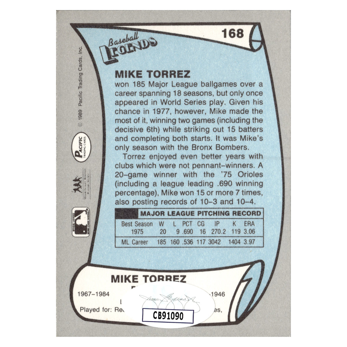 mike torrez boston red sox autographed signed 1989 pacific baseball legends (JSA COA #cb91090)
