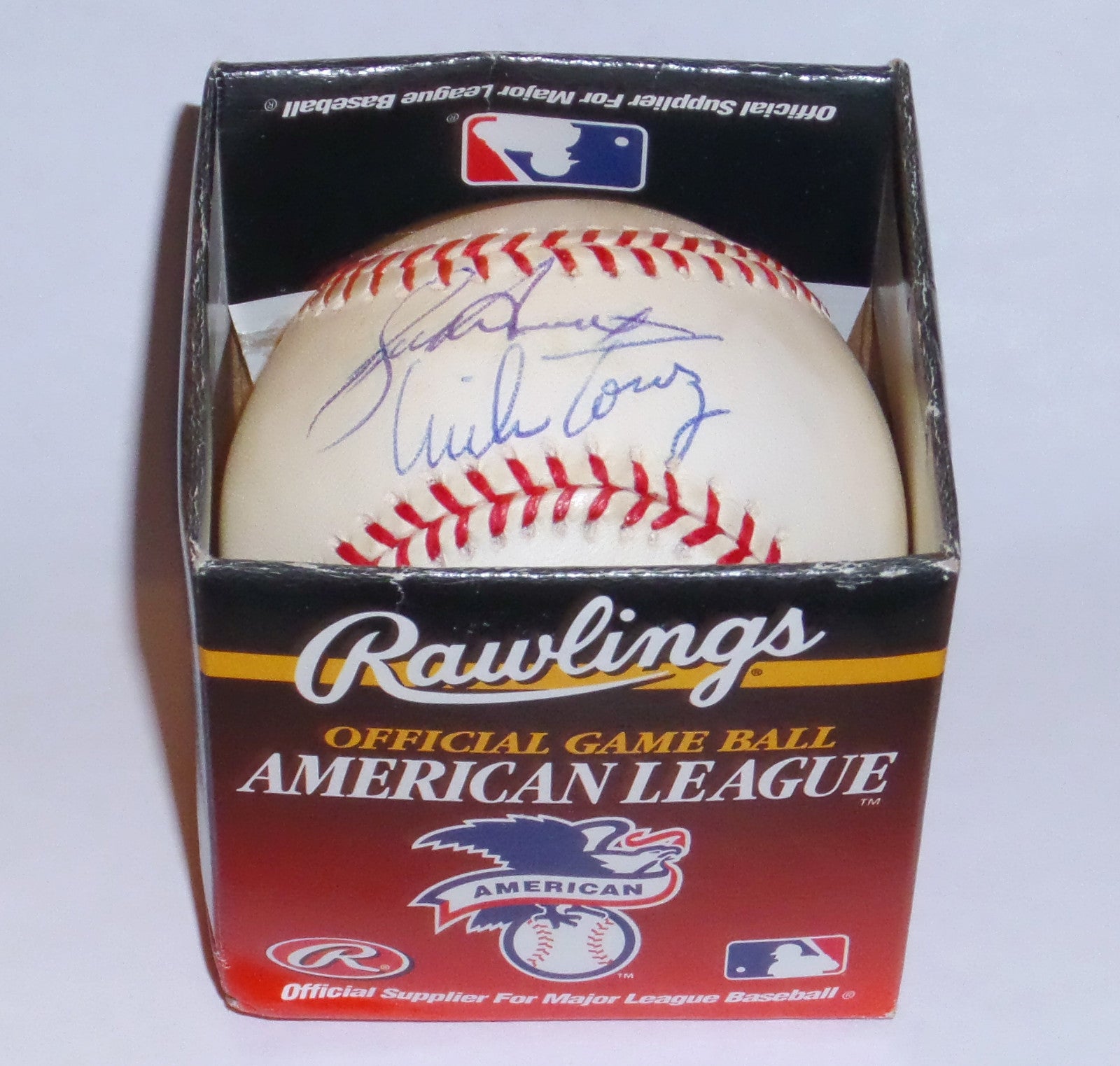 MIKE TORREZ + BUCKY DENT DUAL SIGNED OAL BALL NY YANKEES BOSTON RED SOX AUTOS