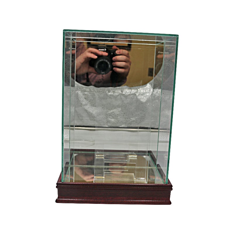 MMA Single Glove Glass Case with Wood Base and Acrylic Glove Stand (Overall Case Dimensions 7" x 4" x 10").