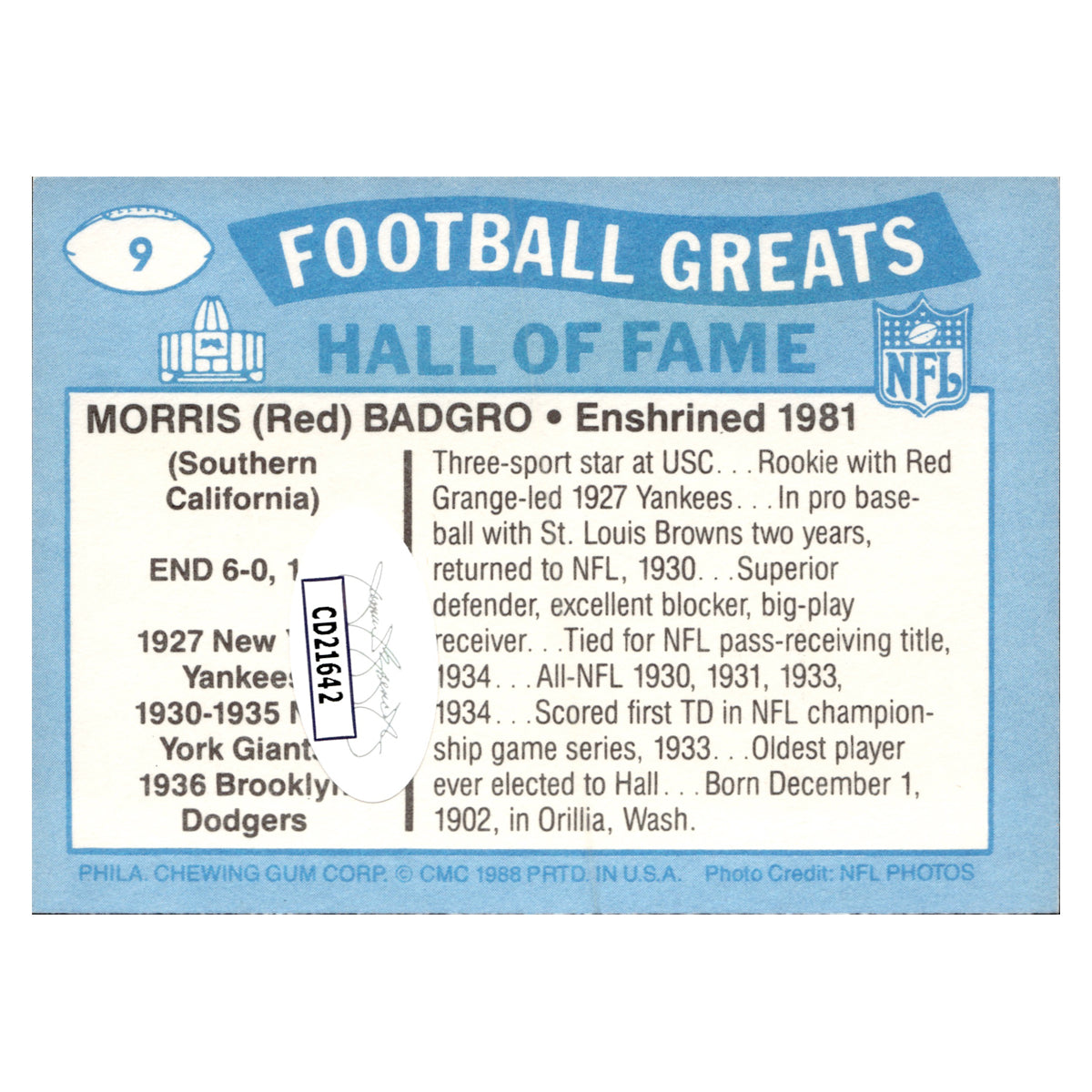morris "red" badgro new york giants autographed signed 2015 swell greats pro football hall of fame goal 25th anniversary card (JSA COA #cd21642)