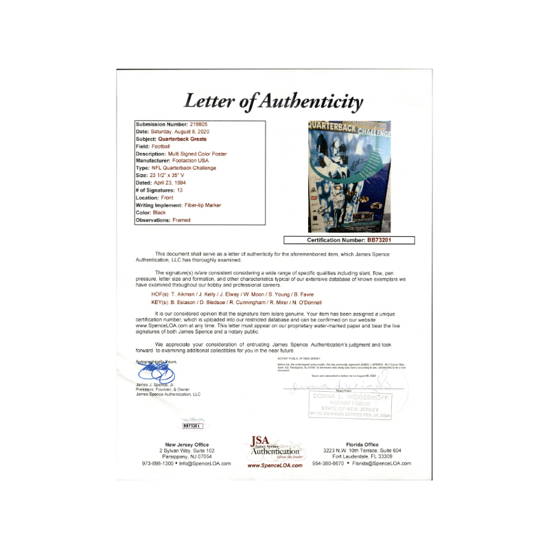 NFL all time great quarterbacks 13 signature multi-signed footaction quarterback challenge framed 24x36 poster (JSA LOA)