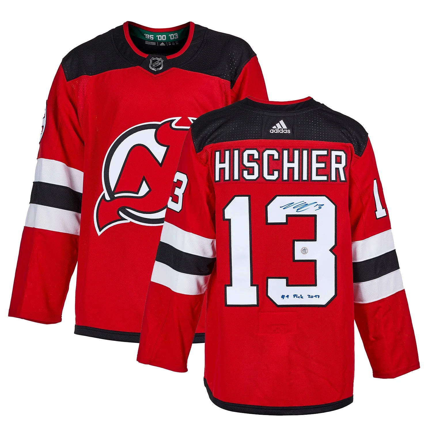 Nico Hischier Signed New Jersey Devils adidas Jersey with 1st Pick Note