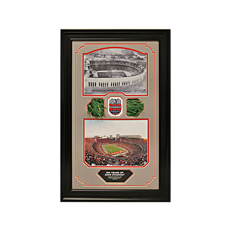 ohio state then and now 100 years of ohio stadium framed collage with piece of authentic ohio stadium turf