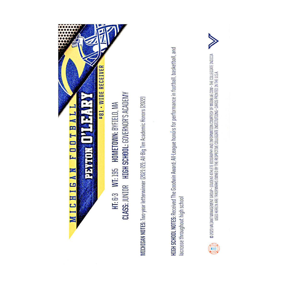 Peyton O'Leary Michigan Wolverines Autographed Signed 2023 Valiant Trading Card (CX Champions Circle LOA)