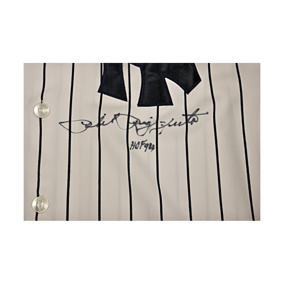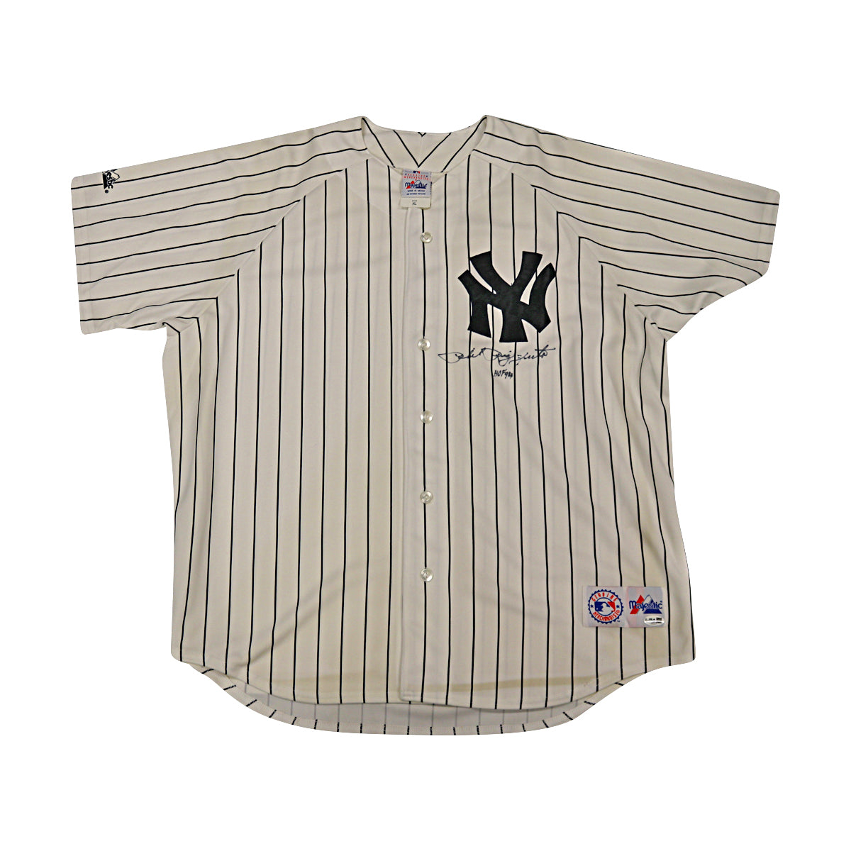 This Majestic jersey is hand-signed and inscribed "HOF" by Yankees legend Phil Rizzuto. A prized collectible authenticated by JSA with a Certificate of Authenticity.