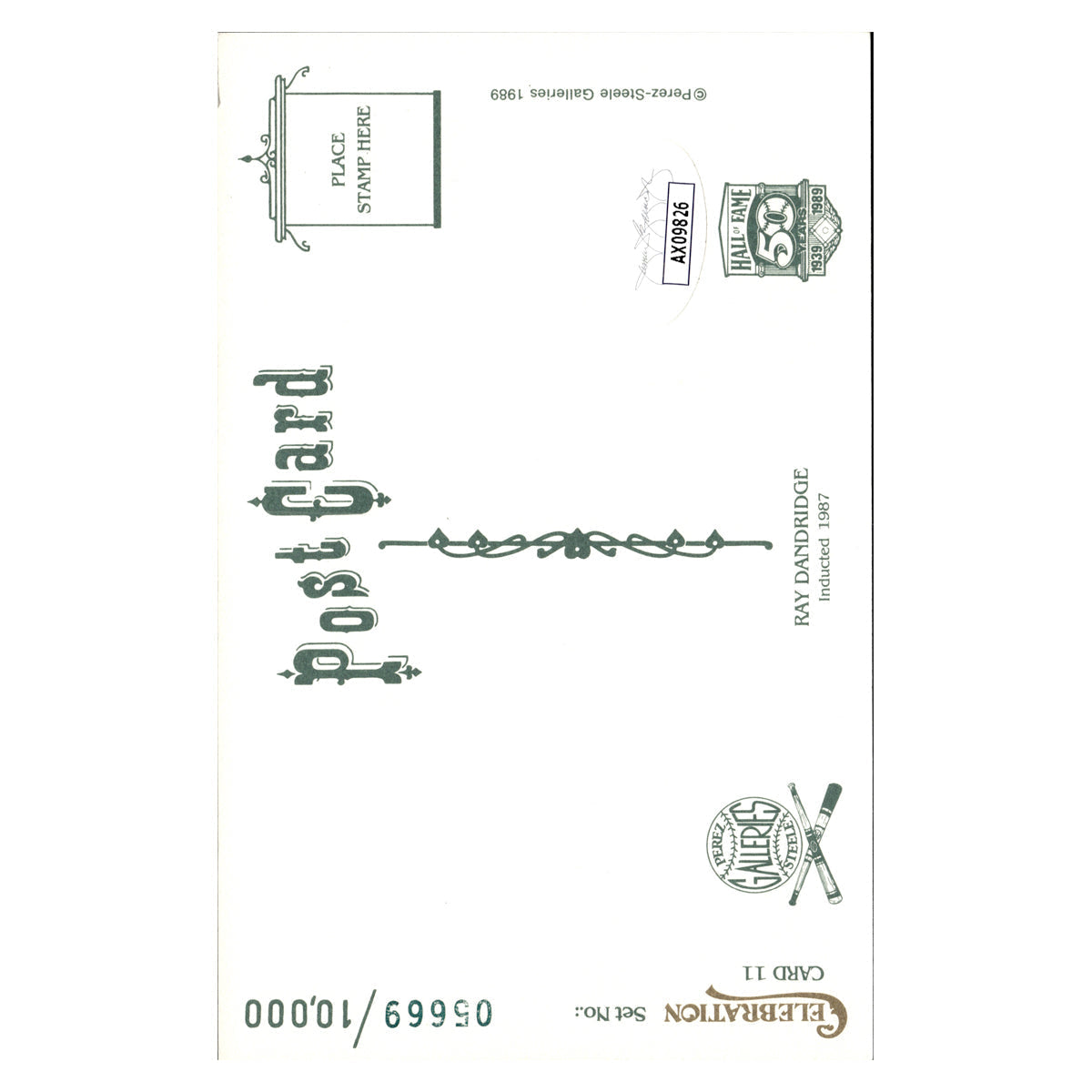 ray dandridge negro leagues autographed signed perez steele 1989 postcard #5669/10000 (JSA COA #ax09826)