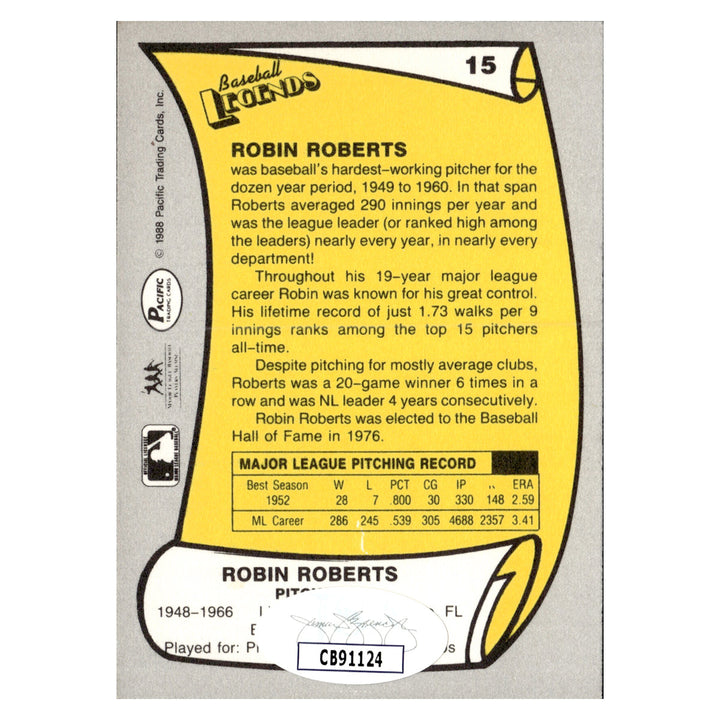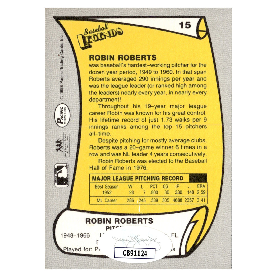 Robin Roberts Philadelphia Phillies Autographed Signed 1988 Pacific Baseball Legends (JSA COA #CB91124)