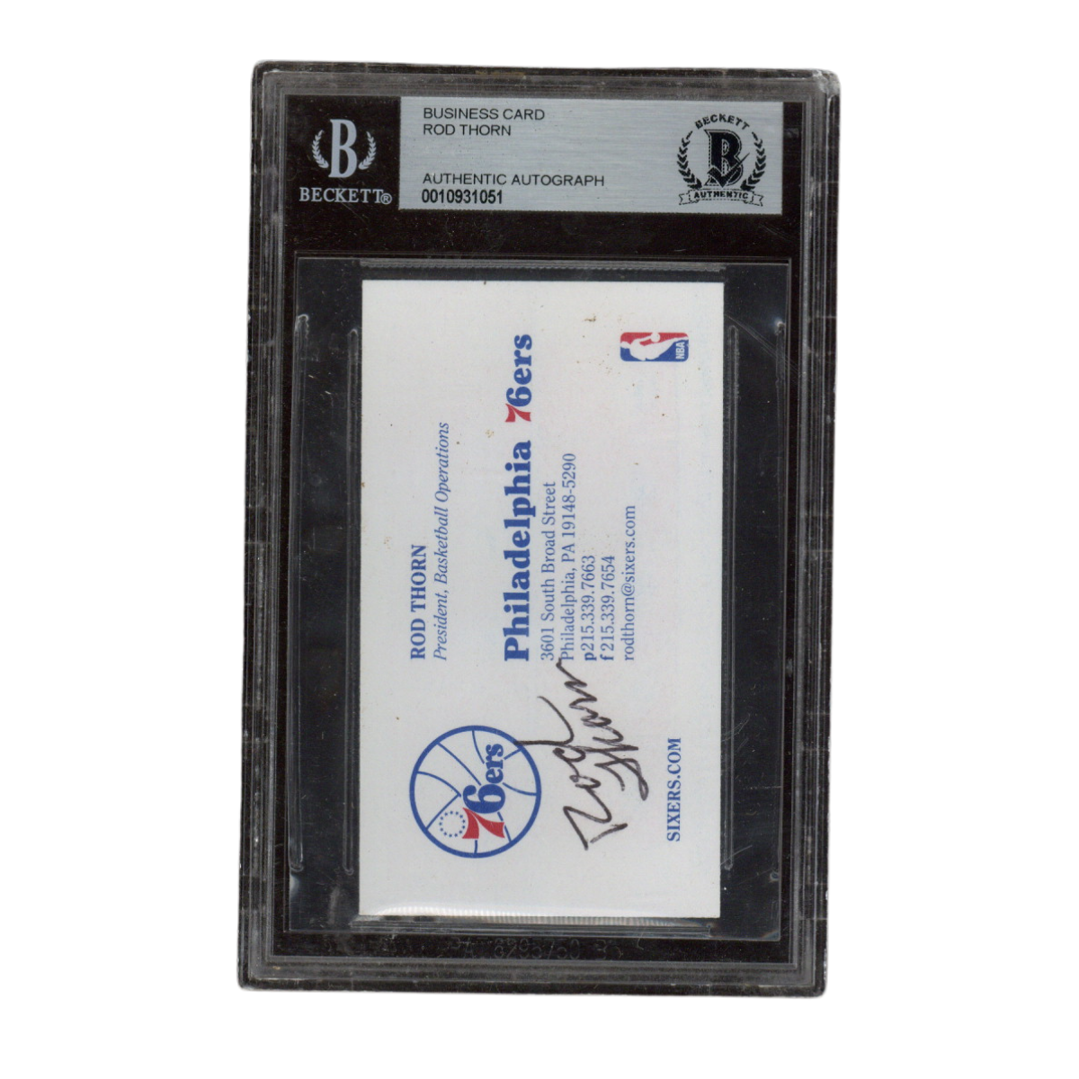 rod thorn autographed signed philadelphia 76ers president business card beckett