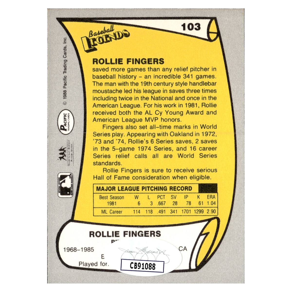 rollie fingers oakland athletics autographed signed 1988 pacific baseball legends (JSA COA #cb91088)