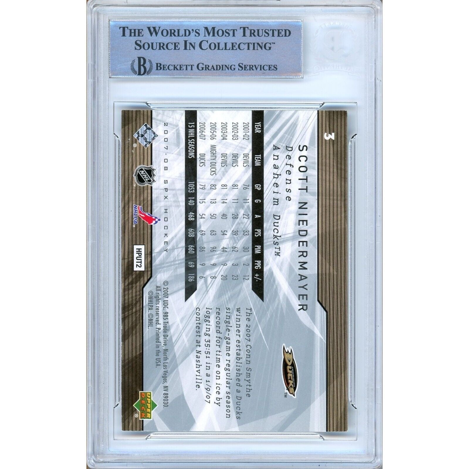 Hockey- Autographed- Scott Niedermayer Anaheim Mighty Ducks Signed 2007-08 Upper Deck SPx Trading Card Beckett Authentic Auto Slab Front