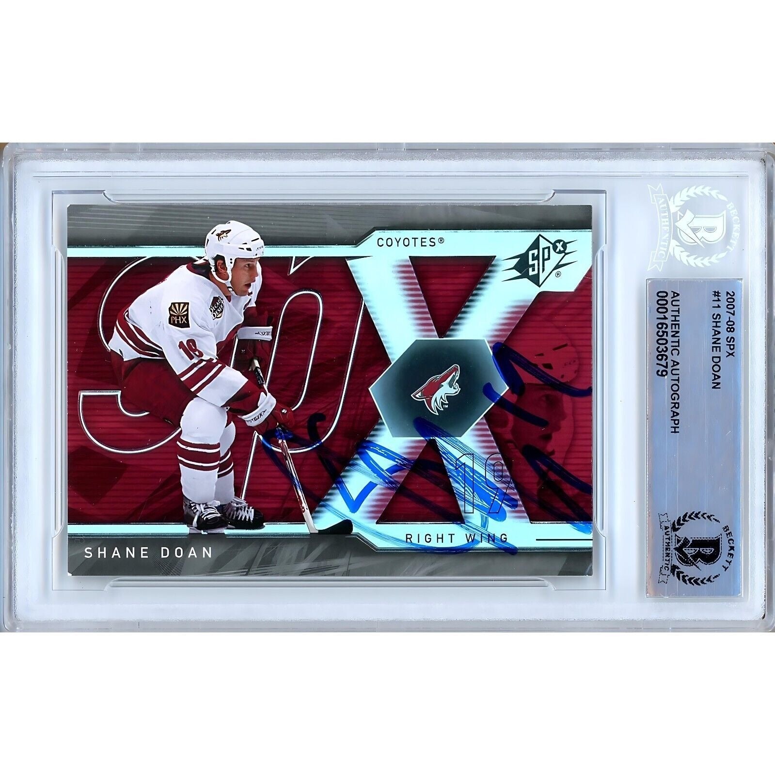 Hockey- Autographed- Shane Doan Phx Coyotes Signed 2007-08 Upper Deck SPx Trading Card Beckett Authentic Auto Slab Back