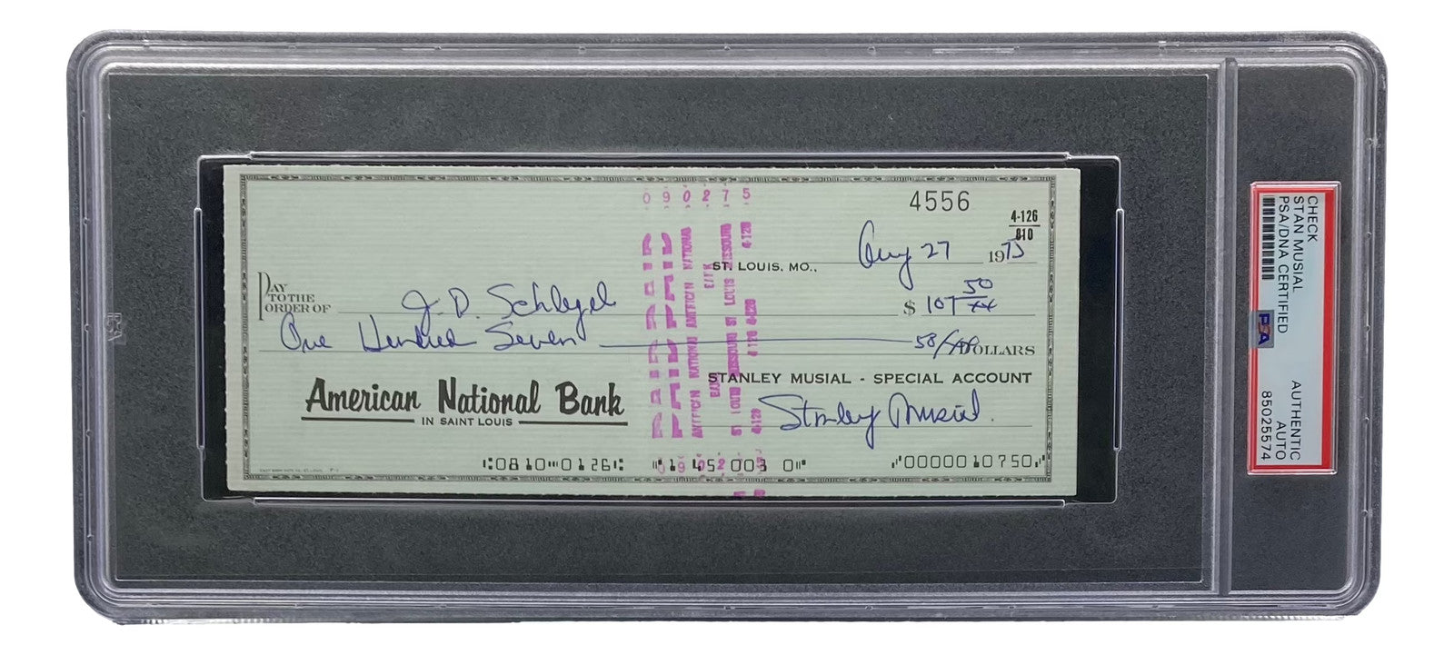 Stan Musial St. Louis Cardinals Signed Bank Check PSA/DNA 85025574