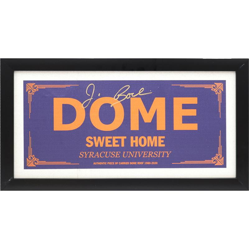 jim boeheim syracuse university autographed and framed 10"x20" dome sweet home sign printed directly on authentic piece of carrier dome roof (CX auth)