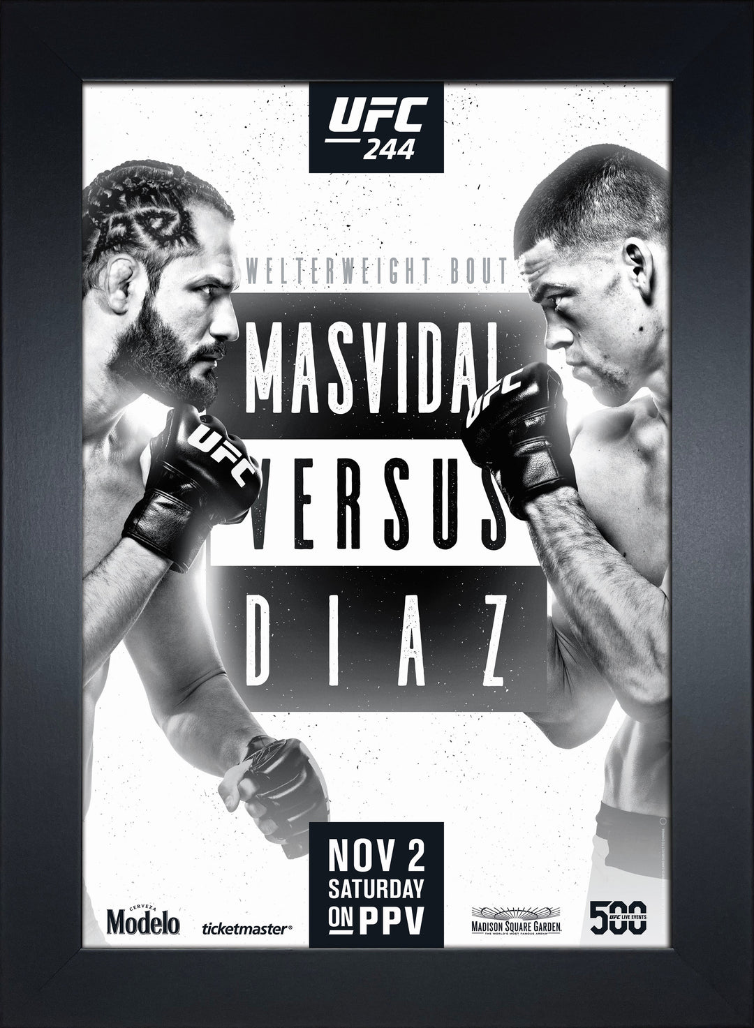 ufc 244: masvidal vs diaz replica mini framed event poster