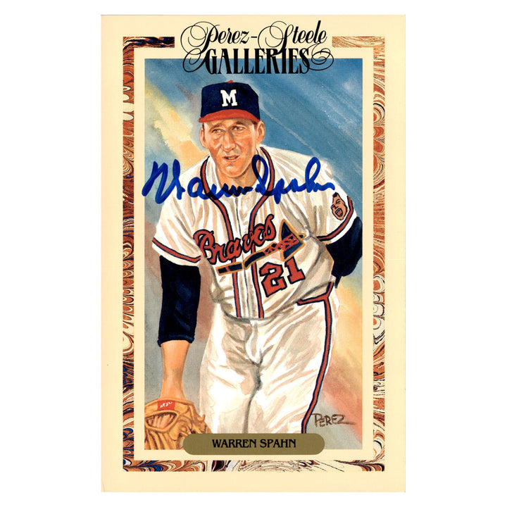 warren spahn atlanta braves autographed signed 1990 perez steele master works card 25 #1364/10000 (JSA COA #ax09947)