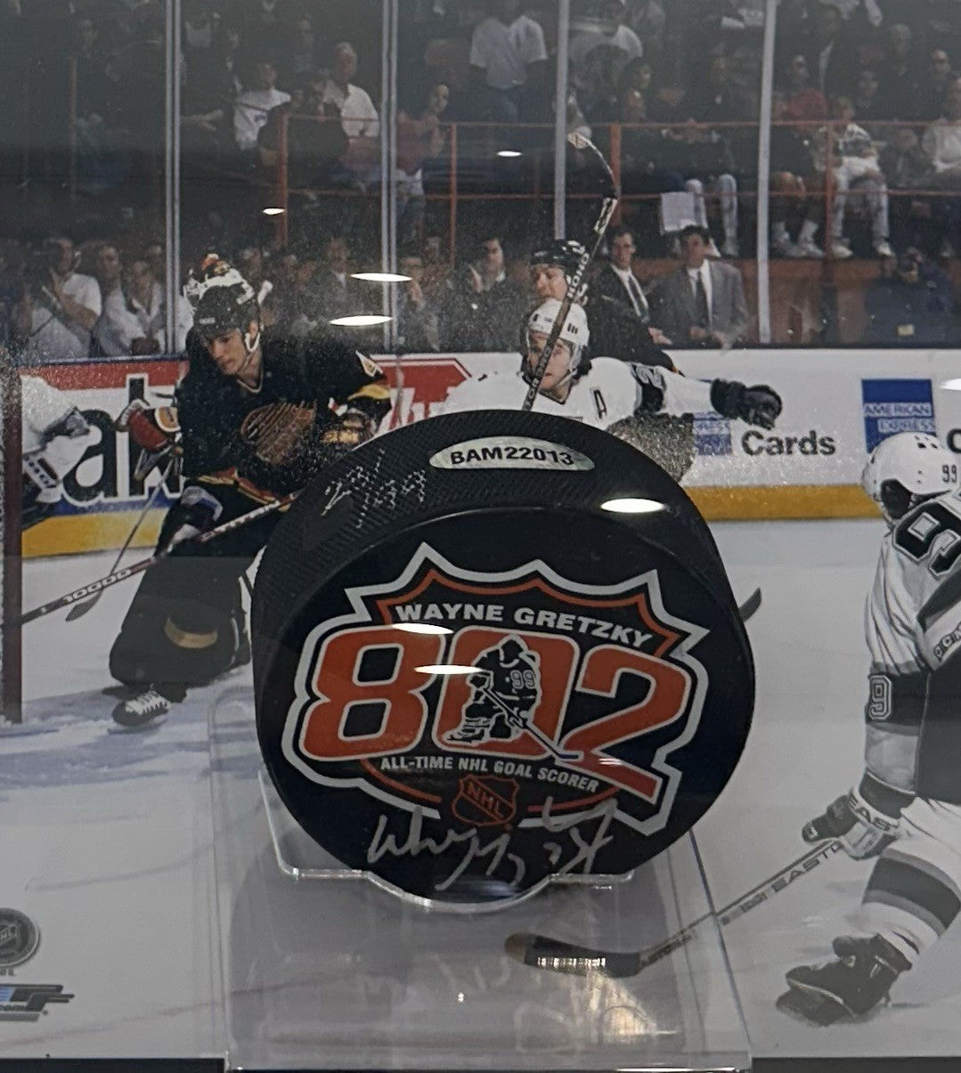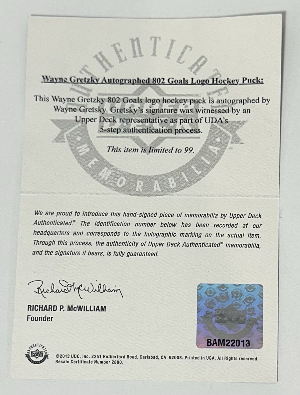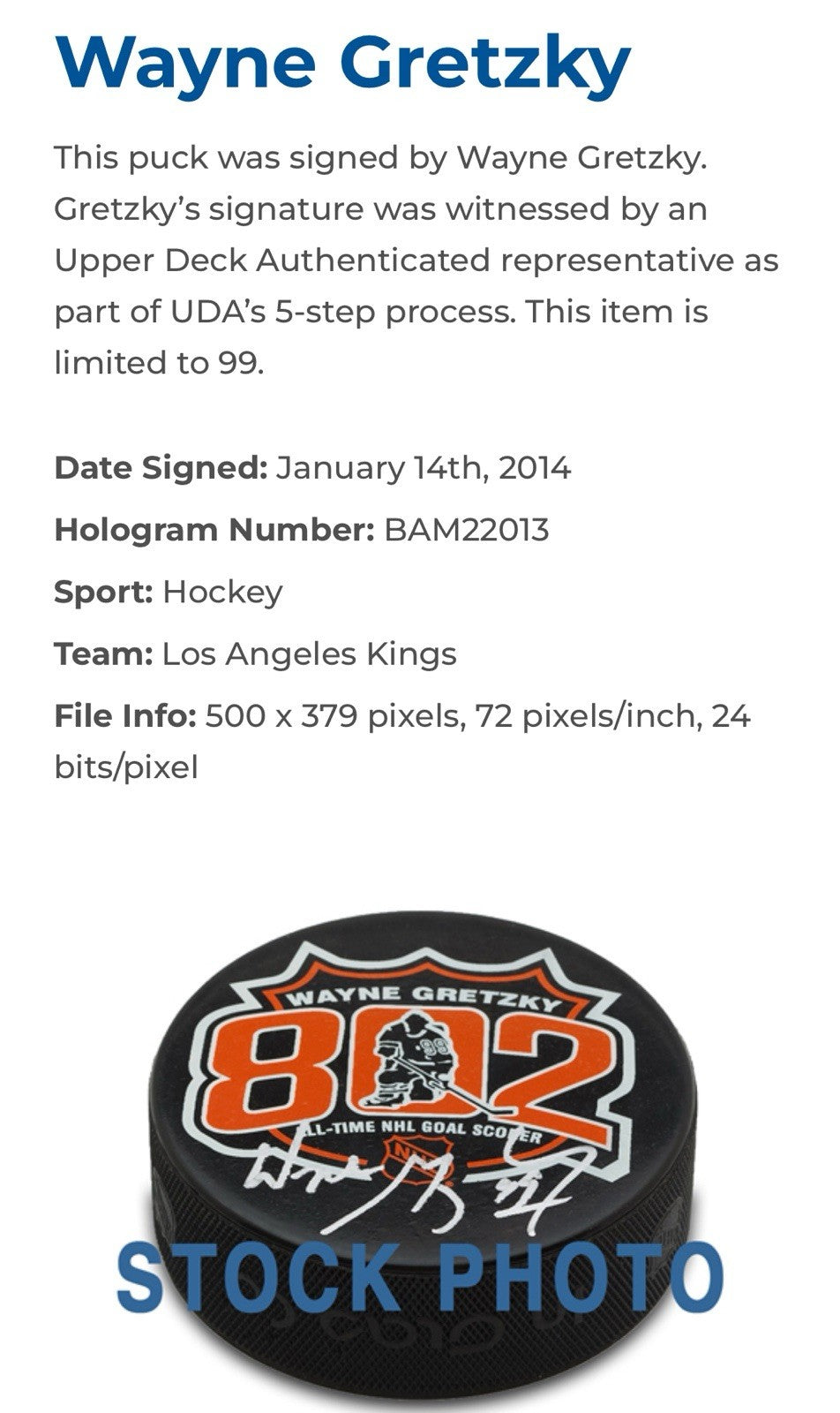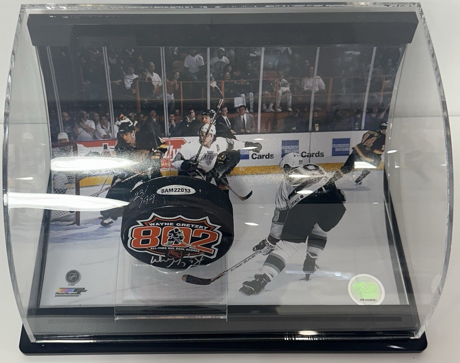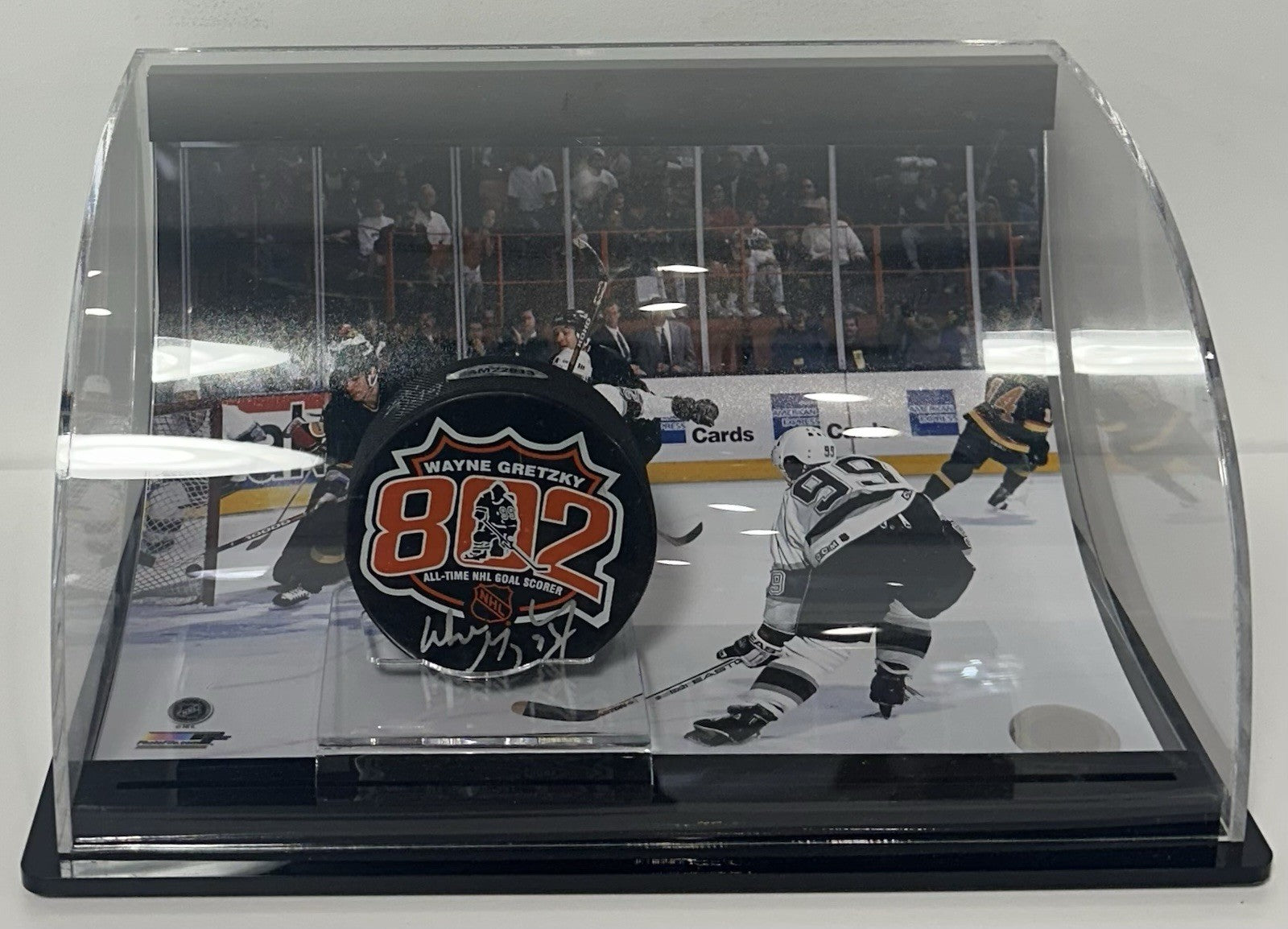 wayne gretzky signed 802 all time goal puck /99 auto w/ case kings UDA COA HOF