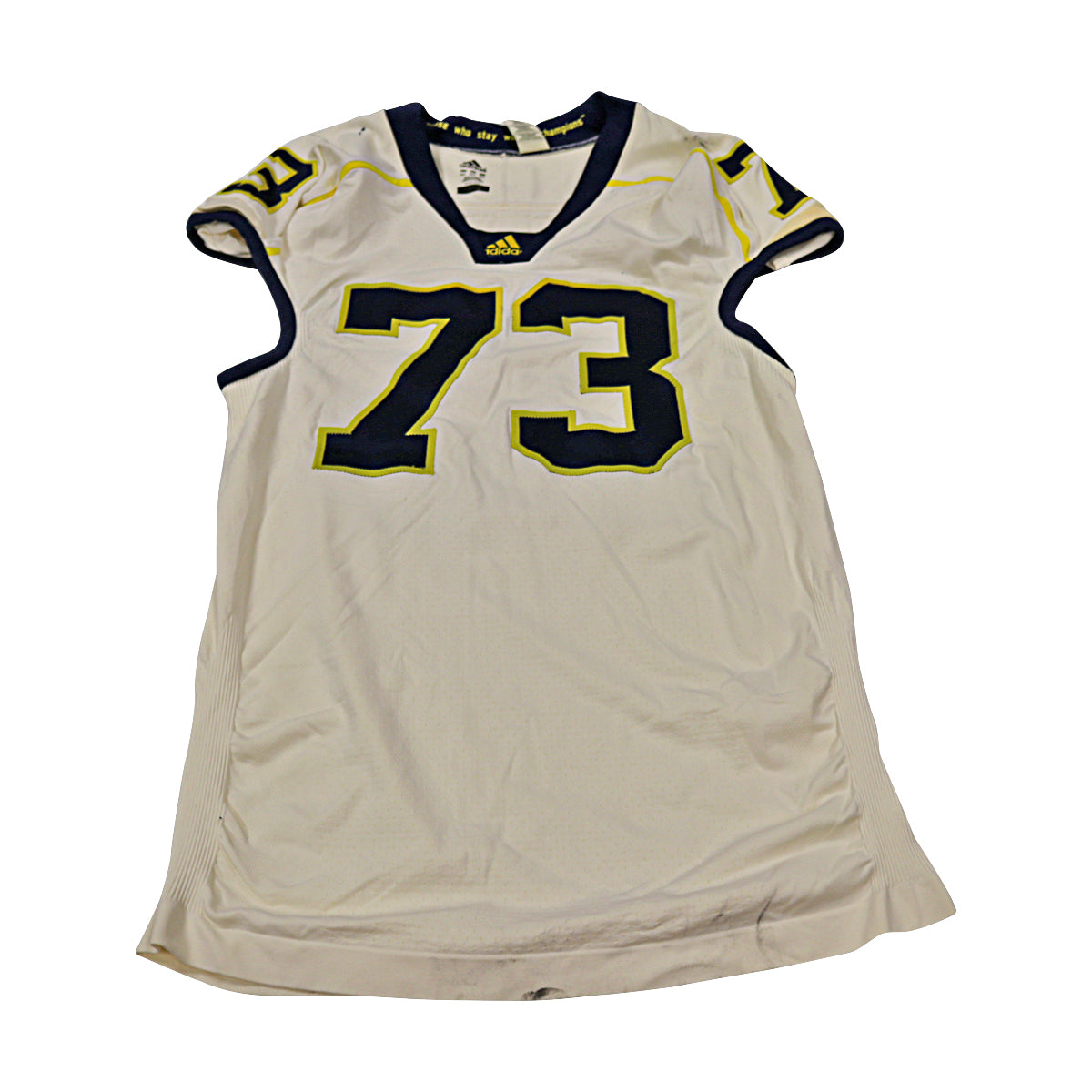 William Campbell Michigan Wolverines Team Issued 2012 Cream Alternate #73 Adidas Jersey (Size 5AC). Those who stay will be champions printed on neck