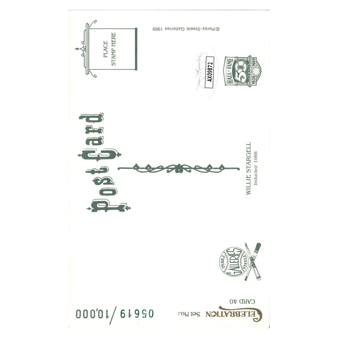 willie stargell pittsburgh pirates autographed signed perez steele 1989 postcard #5619/10000 (JSA COA #ax09872)